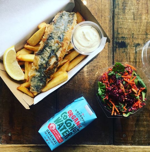 Grilled fish with the option of rice and salad or chips and salad!